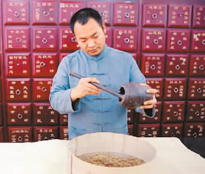 我出生于虞城縣劉集鄉(xiāng)蔡老家村,家中祖輩從事正骨,最引以為豪的是先輩傳承下來的筋骨散熱敷療法,這一療法集散、醋、熱、熨、敷五位為一體,用藥配方工藝復(fù)雜,從原材料篩選、醋制、酒制、碾碎、過苜再到裝袋成品,層層篩選把關(guān),精確配伍。