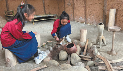 學(xué)生在三星村考古探索基地體驗古蜀人日常生活。劉慶華供圖