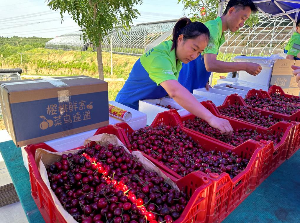 在一處快遞攬收服務點,快遞員正在給櫻桃打包。(受訪對象供圖)