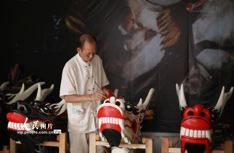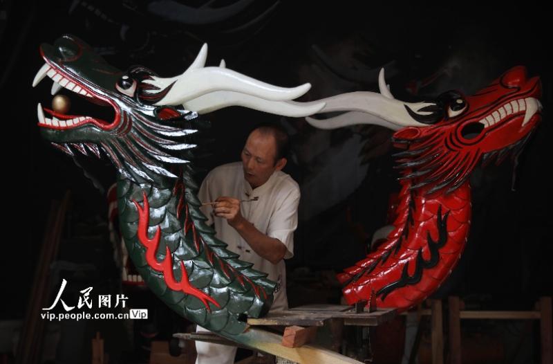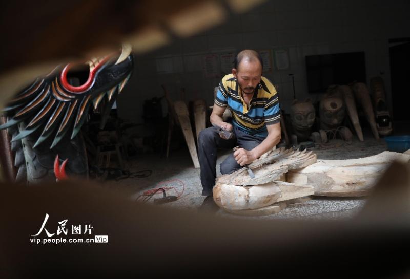 端午節(jié)臨近,湖南省永州市道縣一些社區(qū)、村莊開始打造一批新龍船。每年這個時候,也是道縣省級非遺傳承人、龍船頭雕刻木匠陳兵壽最忙碌的時候。