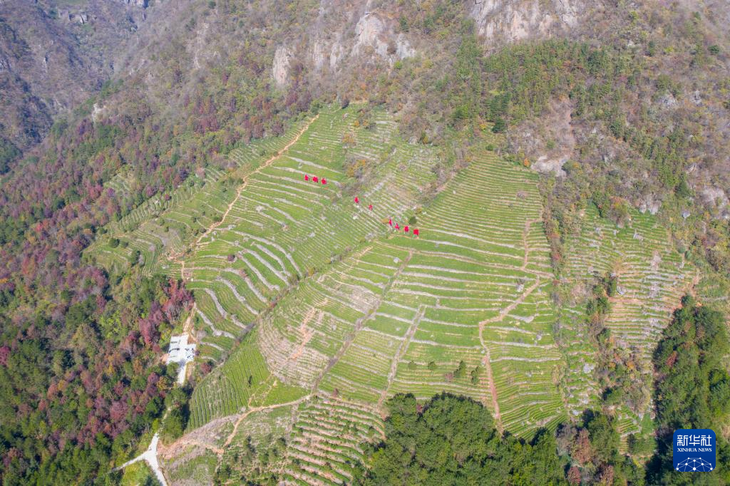 這是安徽省六安市金寨縣湯家匯鎮(zhèn)金剛臺(tái)村的高山茶園一隅(2023年11月攝,無(wú)人機(jī)照片)。新華社發(fā)