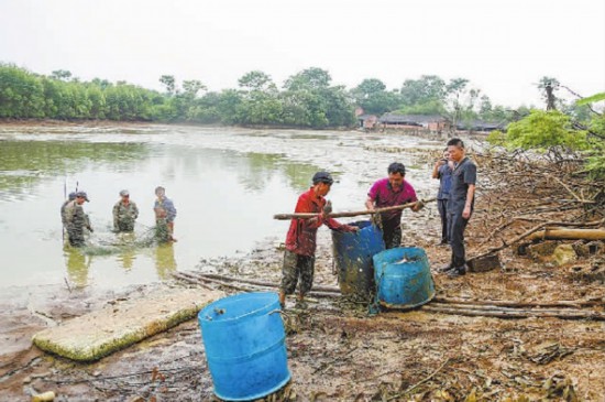 圖②:執(zhí)行干警督促凌某捕魚清塘。