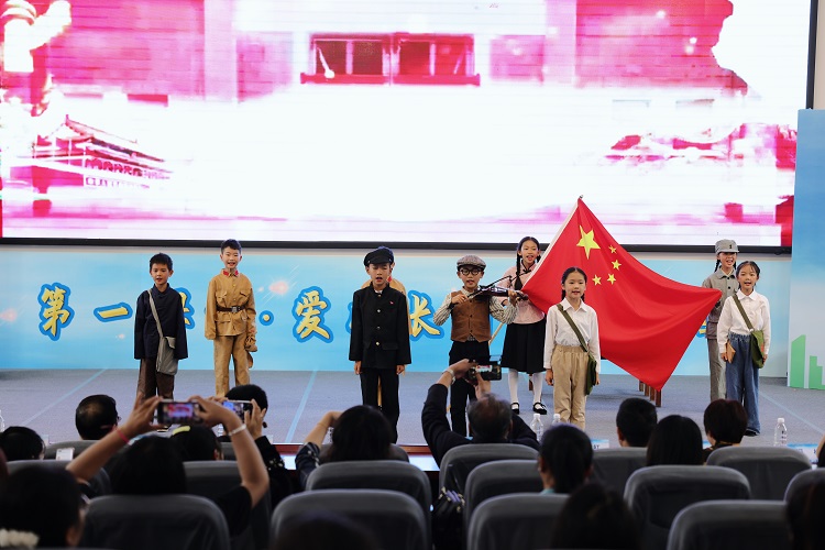 啟動會現(xiàn)場,來自呈貢區(qū)第二小學(xué)的同學(xué)們?yōu)榇蠹冶硌萘恕段液蛷執(zhí)焯摰墓适隆肺枧_短劇。孩子們通過表演,表達(dá)了對于革命先輩的敬仰之情,也展示出新時代少年兒童朝氣蓬勃的精神風(fēng)貌。