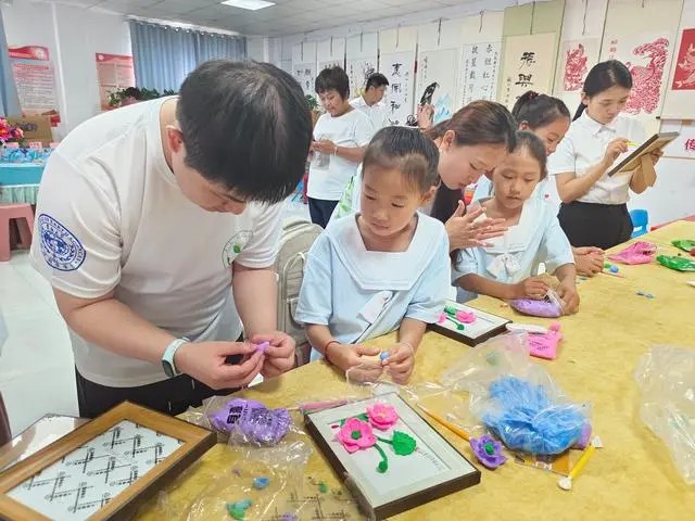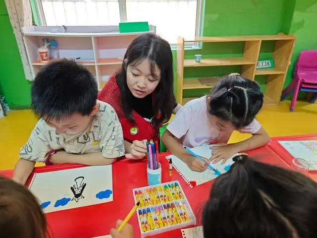 吉林大學的志愿者團隊來到山東省菏澤市鄆城縣,利用“愛心行囊”中的畫筆套裝和提前準備好的橡皮泥、彩色卡紙等,與當?shù)貎和黄鹄L畫、做手工,引導小朋友們將天馬行空的想象融入作品之中,激發(fā)孩子們的志趣愛好和創(chuàng)造力,滿足他們的好奇心和求知欲。