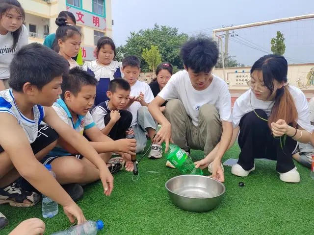 安徽財經(jīng)大學的志愿者團隊來到安徽省阜陽市潁上縣慎城鎮(zhèn)中心學校開展結伴活動。期間,大學生志愿者化身“科學魔法師”,借助“愛心行囊”中的科學實驗套裝,帶領孩子們探索科學的奧秘,并耐心講解實驗背后的科學道理。