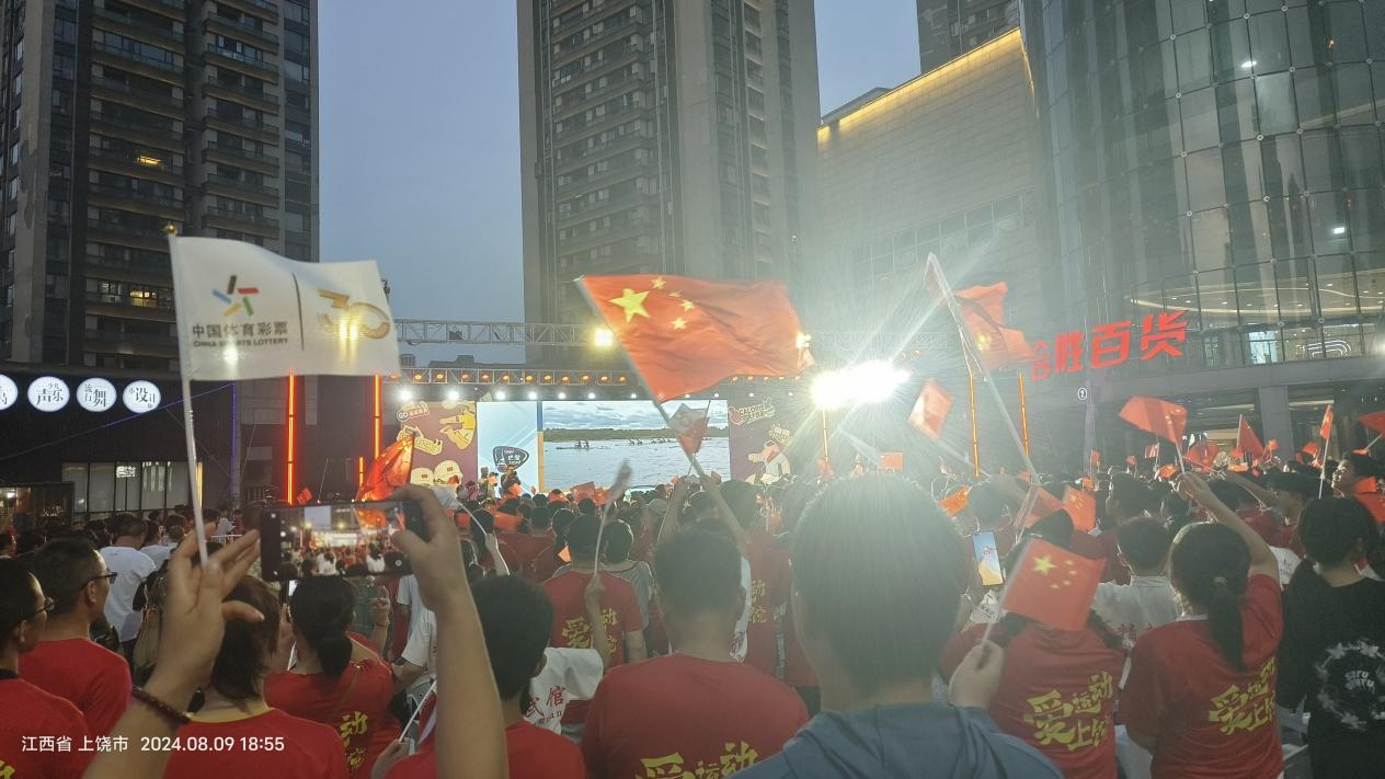 金牌戰(zhàn)前,體彩工作人員向現(xiàn)場(chǎng)市民發(fā)放了多面“中國(guó)體育彩票”小旗幟和小國(guó)旗,號(hào)召大家一起為徐詩(shī)曉加油助威。徐爸爸徐媽媽也上臺(tái)揮舞國(guó)旗和體彩小旗幟,感謝家鄉(xiāng)父老們給徐詩(shī)曉的鼓勵(lì)和支持。隨著徐詩(shī)曉與搭檔孫夢(mèng)雅率先沖過(guò)終點(diǎn),現(xiàn)場(chǎng)瞬間沸騰了……中國(guó)體育彩票的工作人員,也為能給奧運(yùn)健兒為國(guó)爭(zhēng)光盡一份力而驕傲、自豪!