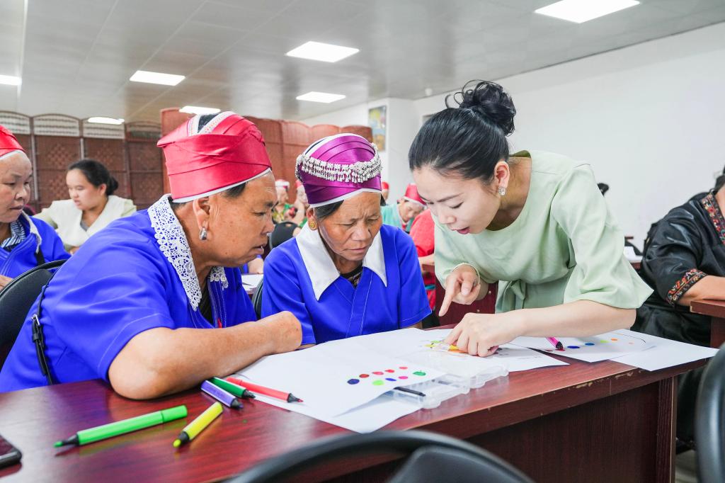 “除了指導(dǎo)大家熟練地掌握刺繡等技藝,我更希望能給大家?guī)バ碌脑O(shè)計(jì)和創(chuàng)作理念,在傳承苗繡的過程中,也能更好地?fù)肀r(shí)尚。”焦洪秀說。