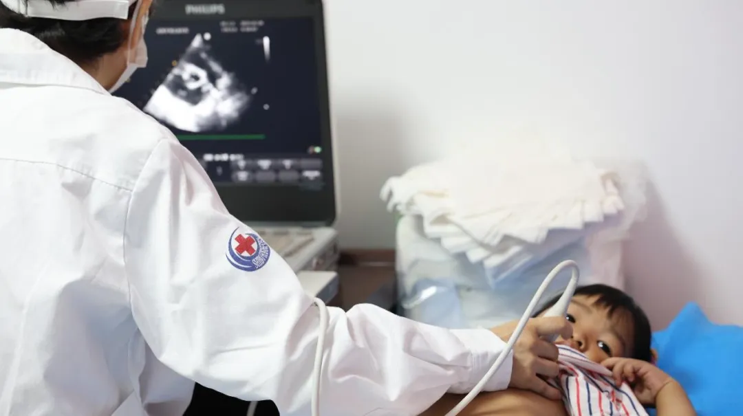 在篩查過程中,一位來自大山深處的母親抱著年僅兩歲的兒子,眼中滿是擔(dān)憂。該患兒自出生起便體弱多病,但受限于當(dāng)?shù)蒯t(yī)療條件,一直未能確診。經(jīng)過醫(yī)療隊(duì)專家細(xì)心的聽診與超聲檢查,確認(rèn)患兒符合先心病篩查救助條件,并詳細(xì)說明了資助流程,得知消息后的母親握著專家的手連聲道謝。