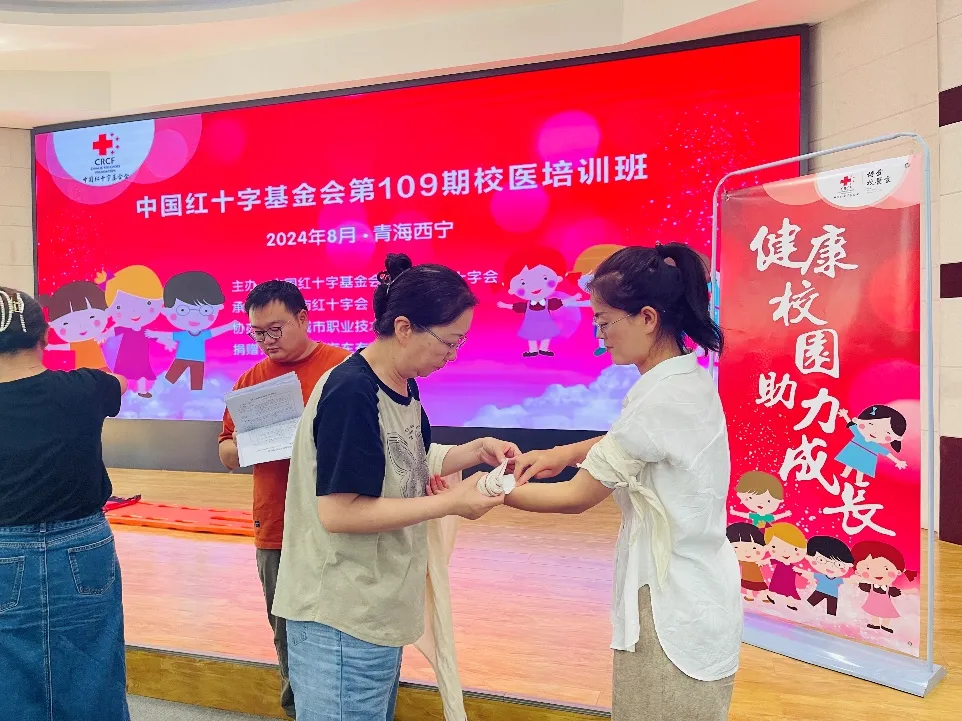 為助力平安校園建設(shè),提高學(xué)校應(yīng)對突發(fā)公共衛(wèi)生事件應(yīng)急處置能力,推動校園衛(wèi)生健康事業(yè)發(fā)展,8月28日,中國紅十字基金會第109期校醫(yī)培訓(xùn)班在西寧城市職業(yè)技術(shù)學(xué)院正式開班。中國紅十字基金會應(yīng)急救護(hù)部項(xiàng)目主管陳碧華、青海省紅十字會賑濟(jì)救護(hù)部副部長安軍等出席開班式,西寧市紅十字會黨組成員、副會長張永福致辭。