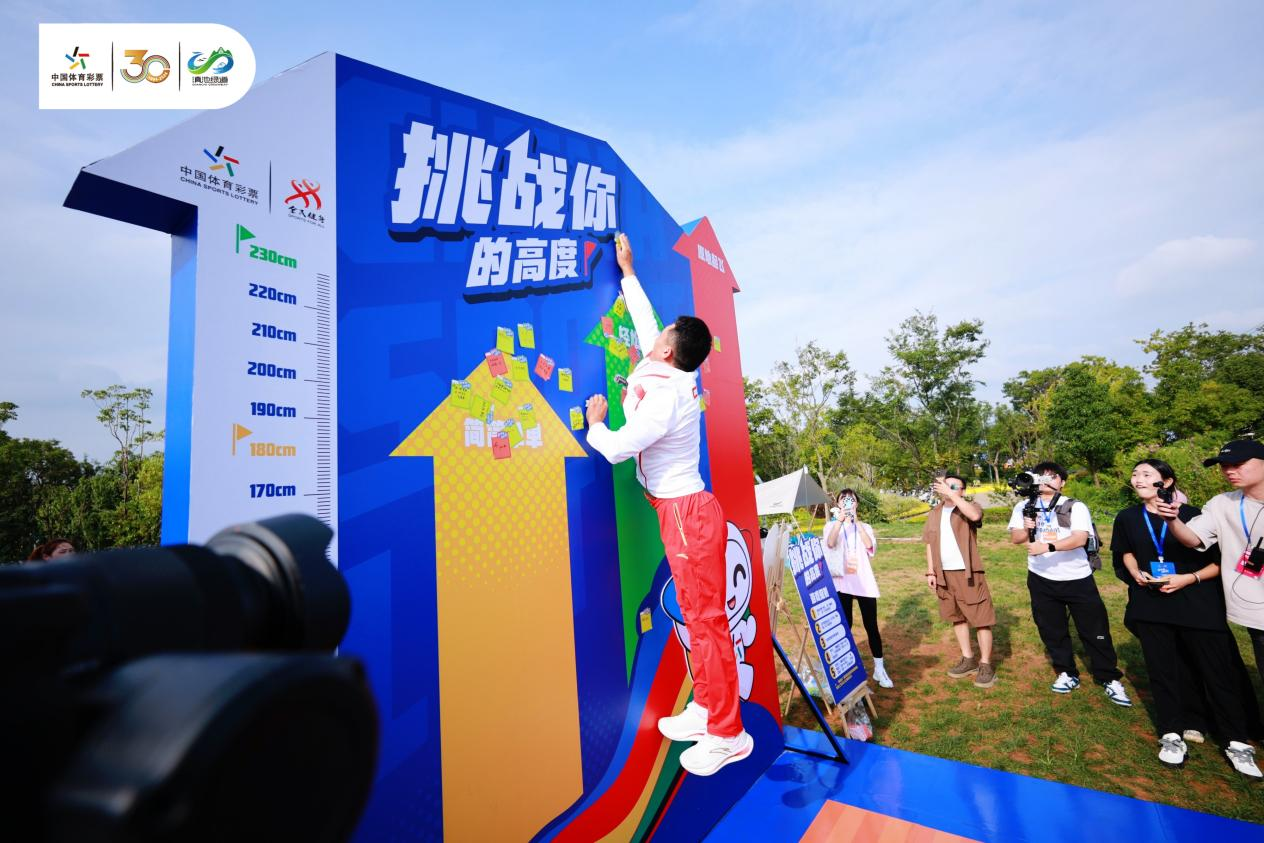 9月7日上午,在云南省昆明市滇池東岸,中國體育彩票“邁開步動出彩”主題健身徒步走活動現(xiàn)場,劉浩在眾人的圍觀中一躍而起,將寫著祝福語的便利貼粘在了活動展板的最高處,引起一片歡呼。這天,他作為運(yùn)動員代表參加活動,不僅發(fā)起全民健身倡議、為親子組比賽領(lǐng)跑,還與現(xiàn)場運(yùn)動愛好者一起體驗(yàn)了不同的運(yùn)動小游戲;顒悠陂g,不斷有人與劉浩互動、合影,他都一一配合。對于民眾的熱情,劉浩表示,“很高興能與大家一同參與全民性運(yùn)動,也希望自己能帶動更多人參與到全民健身中來!