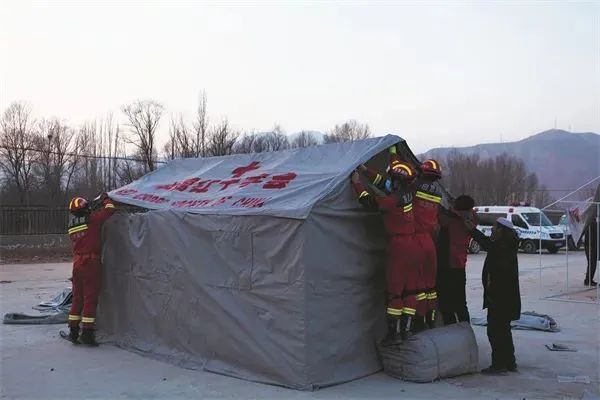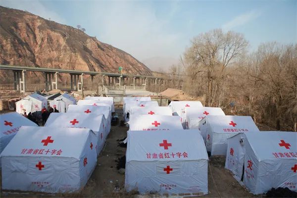 19日0時47分,受災地及周邊省市備災庫完成物資出庫;上午9時許,首批救災物資運抵積石山縣大河家鎮(zhèn)克新民村,包括200頂棉帳篷、2000床棉被和2000件棉大衣;下午,跨省支援的中國紅十字(寧夏)賑濟救援隊到達積石山縣,同期抵達的,還有中國紅十字會總會從寧夏儲備庫調(diào)撥的320頂棉帳篷、500張折疊床、4500件棉服和1554個家庭箱……震后第一夜,紅十字帳篷在甘肅和青海災區(qū)成片豎起。