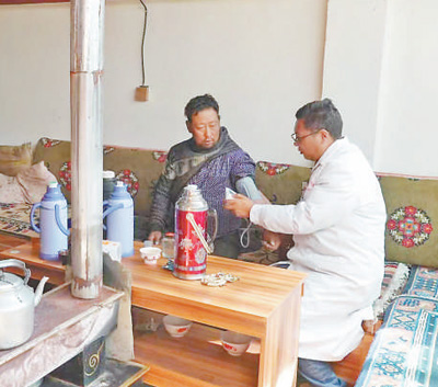 達(dá)頓(右)入戶為群眾檢查身體。次仁多吉 攝