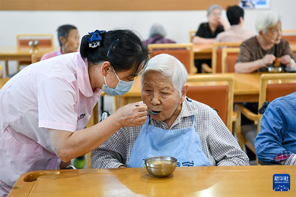 11月1日,在深圳市福田區(qū)福保街道長(zhǎng)者服務(wù)中心(益田),工作人員喂老人喝湯。新華社記者 梁旭 攝