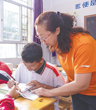 張明明輔導(dǎo)學(xué)生學(xué)習(xí)。楊幫慶 攝