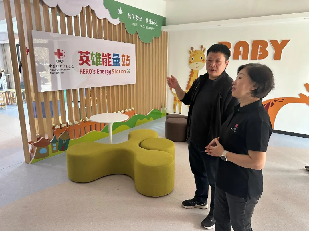 在英山縣城北社區(qū),社區(qū)書(shū)記為基金會(huì)一行詳細(xì)介紹了社區(qū)建設(shè)情況,王軼凡與社區(qū)書(shū)記一道為城北社區(qū)幸福里“英雄能量站”進(jìn)行了揭牌?!坝⑿勰芰空尽辈粌H為社區(qū)兒童配備了書(shū)本、課桌、教具、玩具等,還為社區(qū)志愿者提供了學(xué)習(xí)培訓(xùn)和奉獻(xiàn)的舞臺(tái)。