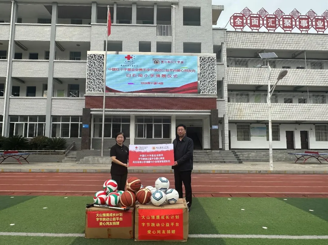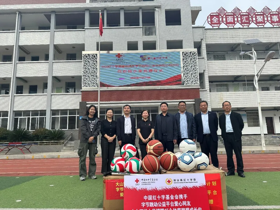 在英山縣白石坳小學(xué),王軼凡代表基金會(huì)向?qū)W校師生捐贈(zèng)了 “體育夢(mèng)想成長(zhǎng)包”。隨后,基金會(huì)一行認(rèn)真查看了白石坳小學(xué)“英雄能量站”、“黃房子”、“未來(lái)教室”、“博愛(ài)校醫(yī)室”等基金會(huì)援助項(xiàng)目的落實(shí)及應(yīng)用情況。