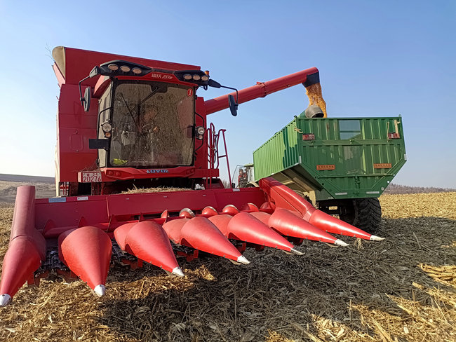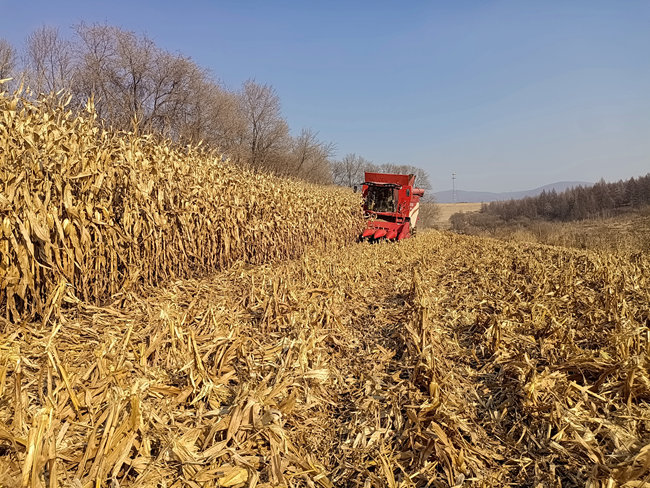 玉米喜豐收,金黃糧滿倉。在圖們市涼水鎮(zhèn)的玉米地,只見玉米已采收完畢,只留下滿地玉米秸稈。一臺(tái)大型秸稈收割機(jī)正在作業(yè),將一排排玉米秸稈卷入機(jī)器粉碎后,傳輸?shù)竭\(yùn)輸車,運(yùn)往圖們市德鑫農(nóng)業(yè)服務(wù)有限公司。
