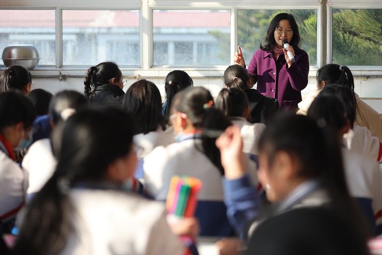 開設公益科普課程和專題培訓,賦能基層醫(yī)護人員,提高涼山醫(yī)療服務水平。捐贈發(fā)放約4200萬元衛(wèi)生用品,開展主題活動、發(fā)放健康知識宣傳手冊,幫助女童了解掌握青春期生理心理衛(wèi)生知識,提升生理心理健康水平和自護能力。圖為中國兒基會“促進涼山女童教育發(fā)展”公益項目在四川省涼山州西昌市西寧中學舉行落地活動,四川省師范大學心理學副教授為女同學上青春期心理輔導課。