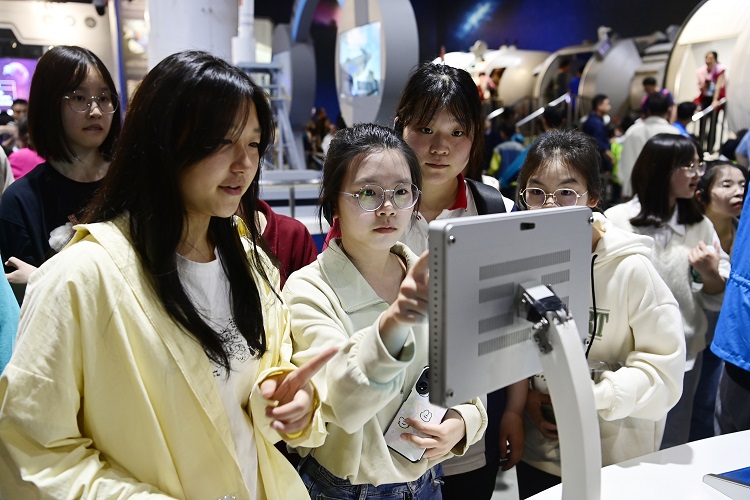 組織女童參加科技成長營會,提升女童的科技素養(yǎng)水平。圖為2024年4月27日,“春蕾計劃——夢想未來”行動·春蕾科技女孩新周期項目在京啟動會后,參會的春蕾女孩到中國科學技術館參觀研學,通過現場講解和手工體驗,身臨其境地探索科技奧秘、開拓科學視野。