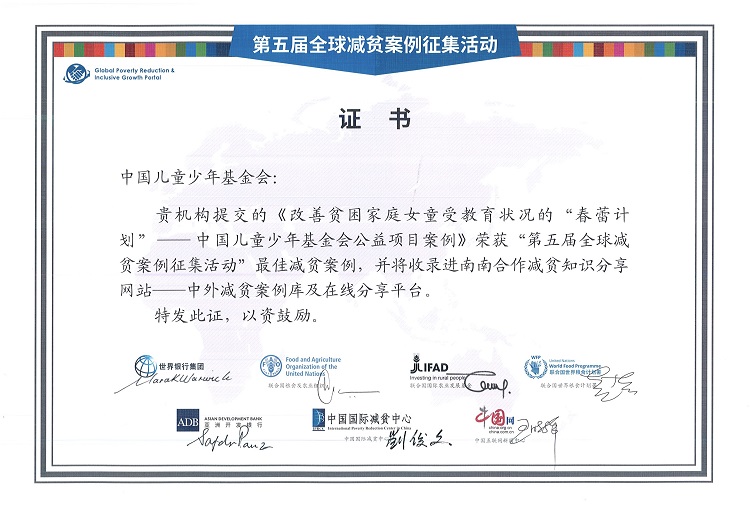 2024年10月,在第五屆“全球減貧案例征集活動”中,“春蕾計劃”榮獲最佳減貧案例。