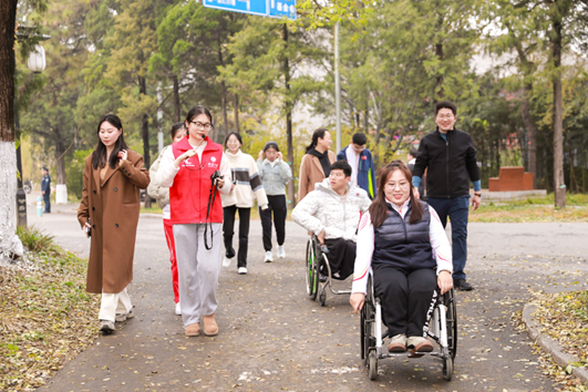 活動(dòng)結(jié)束后,在校園文化講解志愿者的陪同下,殘奧冠軍們來到優(yōu)美的未名湖畔,一同游覽秋日燕園,欣賞未名湖的深秋之景和博雅塔的巍峨挺立,感受北大優(yōu)美的校園景色和深厚的歷史底蘊(yùn),交流友好互助的志愿精神。