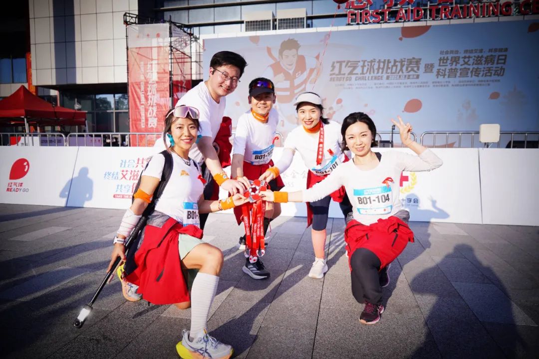 我國今年“世界艾滋病日”宣傳活動(dòng)主題為“社會(huì)共治,終結(jié)艾滋,共享健康”。本站賽事結(jié)合該主題,在起終點(diǎn)設(shè)置了以艾滋病防治、應(yīng)急救護(hù)為主要內(nèi)容的公益宣傳展區(qū),設(shè)置了紅絲帶標(biāo)識(shí)制作及佩戴、心肺復(fù)蘇+AED操作、氣道異物梗阻處置、防艾問答、外傷包扎、小腿骨折固定+擔(dān)架搬運(yùn)和HIV快速檢測盒使用等7個(gè)任務(wù)點(diǎn)。