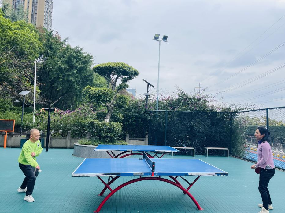 兩江新區(qū)翠云街道福安社區(qū)體育公園建有標(biāo)準(zhǔn)籃球場(chǎng)、羽毛球場(chǎng)、乒乓球場(chǎng)、健身步道、兒童攀爬等場(chǎng)地,覆蓋不同年齡、不同健身需求的人群。整個(gè)體育公園以藍(lán)色為主基調(diào)、設(shè)計(jì)簡(jiǎn)約美觀,隨處可見(jiàn)的體彩公益金標(biāo)識(shí),也讓群眾切實(shí)了解體育公園及健身設(shè)施建設(shè)的資金來(lái)源。正在乒乓球場(chǎng)打球的唐先生表示,這里的場(chǎng)地設(shè)施非常新,空氣也很好,盡管離他家有20多分鐘的車程,他依然堅(jiān)持每天和家人一起來(lái)這里打球。