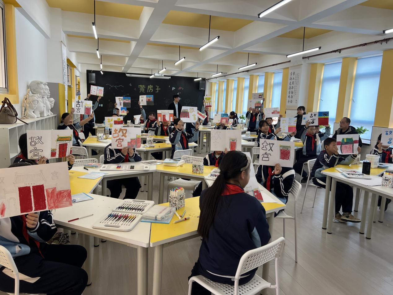 在遼陽市遼陽縣甜水滿族自治鄉(xiāng)中心小學,學校專職美術老師趙思琳以“有趣的生肖郵票”為主題,帶領學生認識郵票的功能和要素,學習使用油畫棒和彩鉛用自己最喜歡的生肖創(chuàng)作一枚郵票。陳睿老師以“故宮印象”為主題開展示范課,帶領大家學習制作有故宮特色的賀卡。