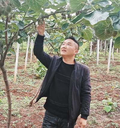 安文忠在查看獼猴桃生長(zhǎng)狀況。(受訪者供圖)