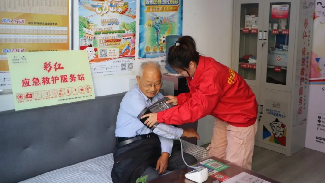 山東菏澤的“體彩+救護”項目也深受群眾好評。目前,菏澤已成功建成27家“彩紅”應急救護服務站。這些體彩店的銷售人員都接受了牡丹區(qū)紅十字會系統(tǒng)且專業(yè)的應急救護知識與技能培訓,內容涵蓋心肺復蘇、創(chuàng)傷救護等關鍵要點,并全部取得救護員資格證書。體彩店內,急救藥箱、血氧儀、血糖儀、血壓計等醫(yī)療救護設備一應俱全,免費向附近居民和購彩群體開放。前來購彩的王女士笑著說:“現(xiàn)在路過這些服務站,感覺特別安心,就像身邊多了個小型醫(yī)療站,要是有個突發(fā)狀況,心里有底。”