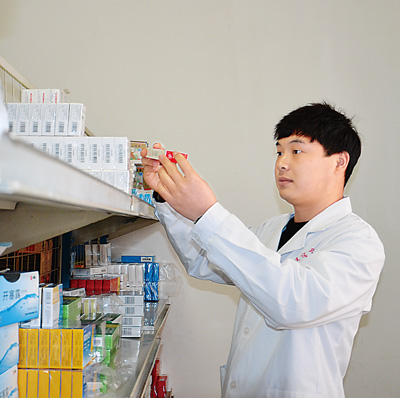 張中在村衛(wèi)生室整理藥品。殷云飛 攝