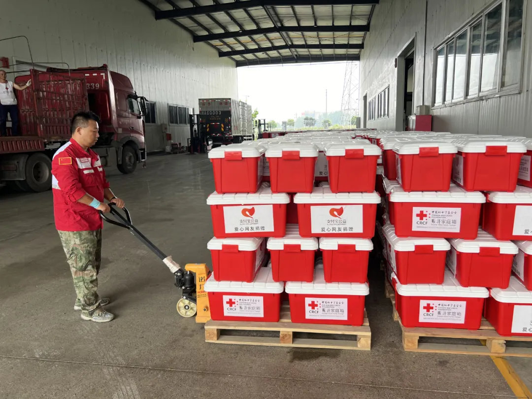 2024年7月,重慶市多個區(qū)縣遭受洪澇災害,中國紅十字基金會緊急援助1500只賑濟家庭箱,保障受災家庭基本生活所需。