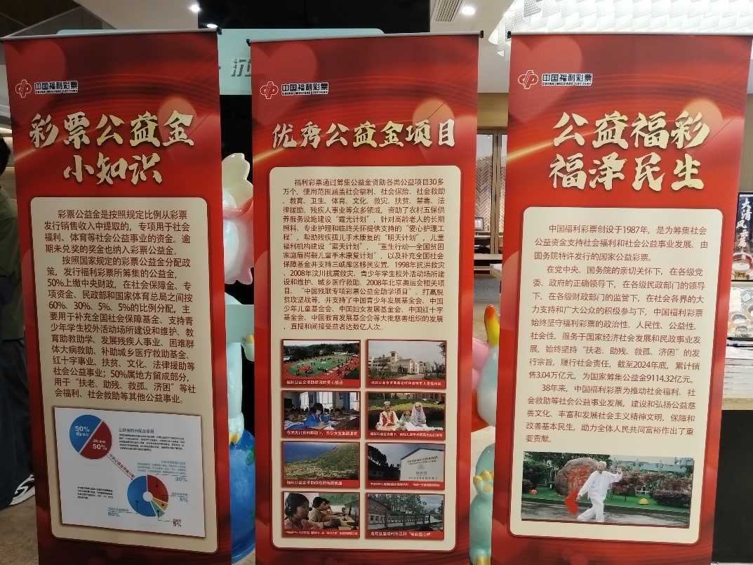 現(xiàn)場的福彩公益展板生動呈現(xiàn)了福利彩票的發(fā)行宗旨、使命、愿景、價值觀,展現(xiàn)了38年間福彩的公益足跡,從“福彩救孤 讓孩子的明天起飛”到“福彩濟困 為困難群眾增福添彩”,每一分公益金的積累都凝聚著購彩者的愛心。