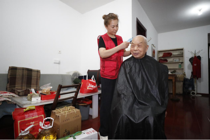 “現(xiàn)在除了腿腳不好,其他都好,上下樓有電梯,坐輪椅哪兒都能去!”言語間,畢春榮滿是對生活的滿足。志愿者們一邊理發(fā),一邊和他嘮著嗑,那畫面,像極了孫輩陪著長輩,讓人感受到歲月靜好的溫馨。