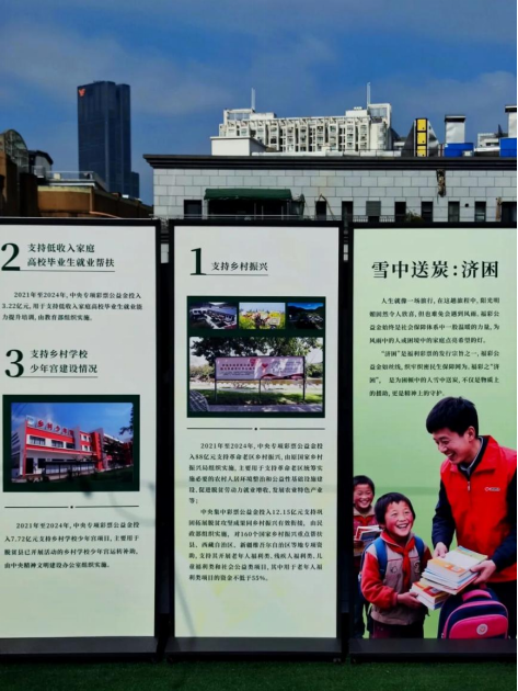 登上書(shū)店五樓天臺(tái)展覽區(qū),這個(gè)藍(lán)天白云之下、高樓環(huán)繞著的特殊空間里,“公益金”板塊不再是冰冷的數(shù)據(jù),而是一幅幅生動(dòng)的畫(huà)面:社區(qū)養(yǎng)老院里老人幸福的笑容、殘疾人士康復(fù)中心的溫馨場(chǎng)景、孤兒院孩子們純真的眼神……每一張圖片都在講述公益金的善意如何化作實(shí)際的善行。