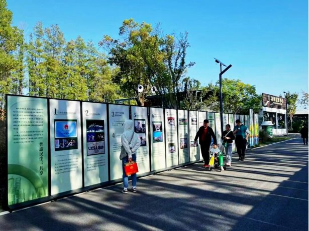當(dāng)展覽從室內(nèi)走向戶外,公益故事也獲得了新的表達(dá)。10月23日到11月7日,公益文化展在秋色正濃的金銀湖半島莊園延續(xù)。