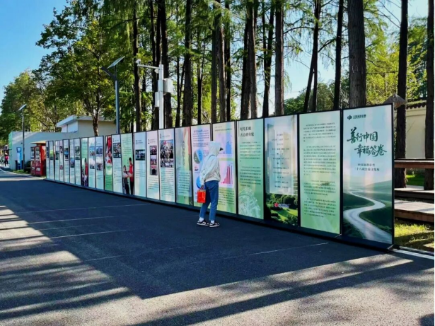 漫步在波光粼粼的湖畔,一邊欣賞自然美景,一邊在“愛(ài)心”板塊前駐足。這里的展板設(shè)計(jì)充分考慮了自然環(huán)境特點(diǎn),采用開(kāi)放式布局,讓公益故事與自然景觀相映成趣。展板上那些記錄福彩發(fā)行宗旨的圖片,映襯著美麗的自然環(huán)境,更顯生動(dòng)感人。