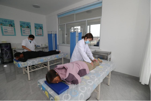 此外,惠民綜合體還設(shè)有百姓影院、中醫(yī)醫(yī)療室、文化娛樂室等功能區(qū)。百姓影院每月播放紅色電影和戲曲節(jié)目等;中醫(yī)醫(yī)療室為群眾提供針灸、艾灸、推拿、穴位按摩服務(wù),村民在家門口就能享受專業(yè)診療;文化娛樂室里,群眾可以打牌、下棋、唱戲,成為大家的“精神樂園”。